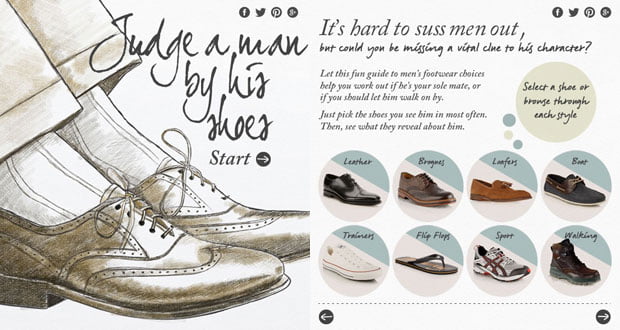 'Judge a Man by His Shoes' was created by high street fashion retailer Debenhams, and we found it very interesting indeed. We'd even go as far as to say it's been somewhat of a revelation to see it all laid out for us - there are insights into how naïve certain footwear choices are, given how women often use them to interpret our personalities.